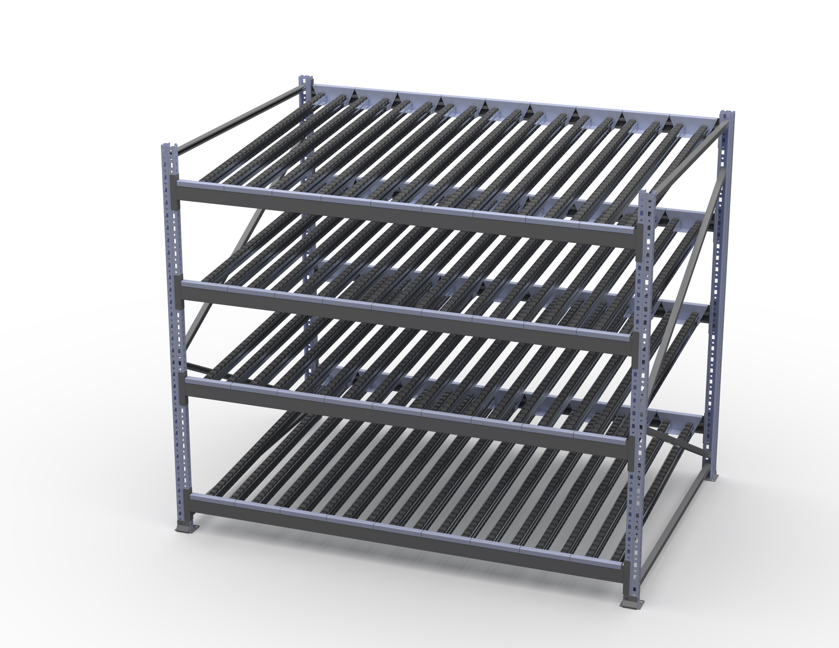 Гравитационный стеллаж с роликовыми полками 1600х1800х1300, 4 яруса
