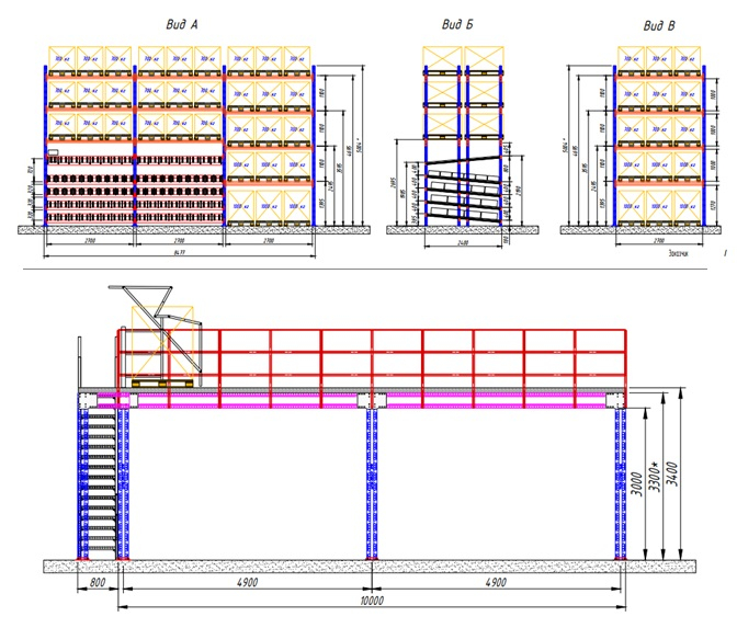 - Количество ярусов (с полом): 5 + гравитационные ярусы хранения 5