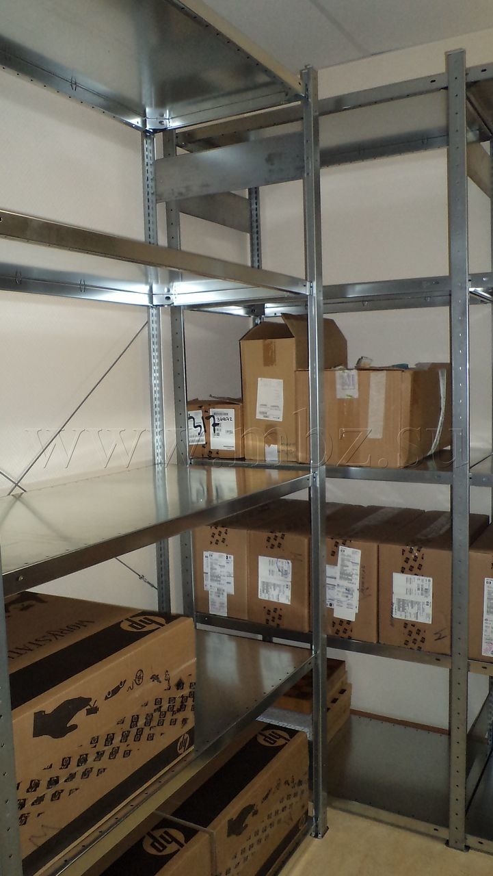 Размещение полочных стеллажей в угловой зоне